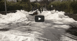 Da notare le strade che si sono trasformate in autentici "fiumi di ghiaccio". I chicchi di grandine si sono poi ammassati in fondo alle discese, dando luogo ad accumuli anche superiori al mezzo metro!