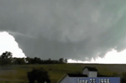 L’operatore è bravissimo; riesce ad immortalare un tornado gigantesco che si avvicina alla propria abitazione, mentre sulla zona cade grandine rada.
