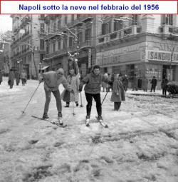 La nevicata del febbraio del 1956 a Napoli attecchì ovunque in modo spettacolare, perchè cadde con temperature inferiori allo zero. Anche il 27 febbraio 2018, cioè oggi, la neve è arrivata con buona intensità in città.