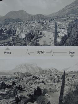 I morti sopravvivono nella memoria dei vivi, che non cancelleranno però mai dalla loro mente quelle immagini di distruzione e quei giorni di grande paura e dolore. (Nelle foto qui sotto Gemona prima e dopo la tragedia, postate da Gianluca di Udine).