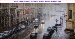 La foto ritrae l’episodio nevoso che ha interessato il capoluogo della Granda nella mattinata odierna: neve senza accumulo in città; E’ bastata un po’ di aria fredda e le correnti orientate nel modo giusto per imbiancare a dovere questo settore italico.