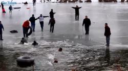 Nel giro di brevissimo tempo grazie all’intervento dei soccorritori via terra sono state tratte in salvo circa una dozzina di persone cadute all’interno dell’acqua ghiacciata dopo che il ghiaccio ha iniziato a fratturarsi su diversi punti.