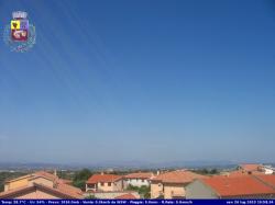 La terza immagine web-cam mostra la situazione atmosferica presente su Genova, Liguria. Da notare la presenza di banchi nuvolosi posti a bassa quota, apportatori di condizioni umide e fortemente afose.