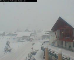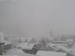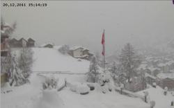 Andermatt (prima immagine in alto) in mezzo metro di neve fresca. Neve incessante anche nel Canton Vallese, dove solitamente le precipitazioni assumono carattere più moderato. La splendida località di Zermatt (1600 metri) ha accumulato con la nevicata iniziata questa notte 40 centimetri freschi in pieno centro (seconda inquadratura).
