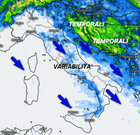 Una nuova e veloce perturbazione scenderà da nord-ovest, ma impegnerà con temporali la Penisola Balcanica e marginalmente il versante adriatico con alcuni veloci piovaschi. Bel tempo sul nord-ovest e le due Isole Maggiori. Condizioni di variabilità altrove con nubi sparse e qualche piovasco nelle aree interne, in un contesto ventoso e non caldo.