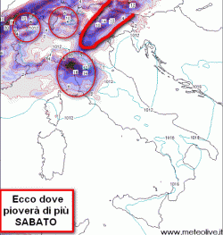 Dove pioverà maggiormente nella giornata di sabato? A questo proposito, le nostre elaborazioni ci danno una grossa mano, individuando le aree dove la meteora liquida sarà più probabile.