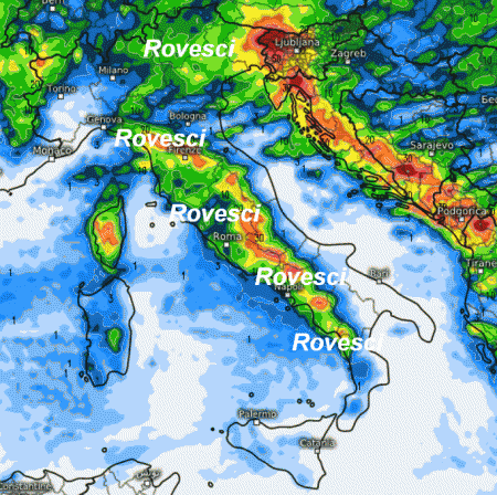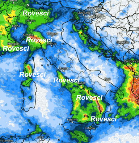 Ancora rovesci al nord-est, lungo tutto il versante tirrenico e le aree interne accompagnati da venti sostenuti occidentali. Lungo il versante adriatico, le estreme regioni meridionali e le Isole tempo asciutto o con piogge poco probabili.