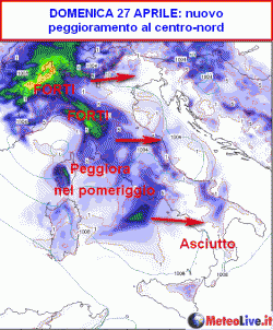 Al nord i fenomeni saranno più scarsi e concentrati essenzialmente sulle zone montuose nel pomeriggio (Alpi, Prealpi, Appennino Ligure-Emiliano). Sulle pianure del nord-ovest saranno possibili momenti soleggiati specie nel pomeriggio.Tempo in miglioramento anche sulla Sardegna a parte qualche rovescio sul settore orientale.