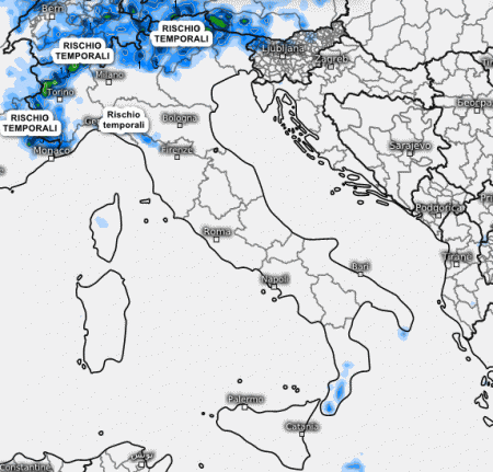 Di seguito, la situazione sinottica attesa in Italia nelle ore centrali di domenica 13 agosto: