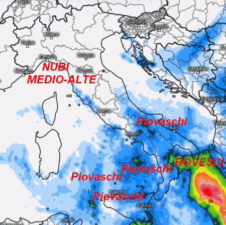 Ecco i piovaschi o rovesci che nell’arco della giornata agiranno al sud e sulla Sicilia, coinvolgendo soprattutto le regioni estreme. Sul resto d’Italia avremo il trionfo delle nubi medio-alte con diffuse velature ed il sole che potrebbe vedersi come dietro un vetro smerigliato, anche se il clima sarà ancora stabile. Temperature molto miti al centro e al nord, più fresco al meridione sotto eventuali fenomeni.