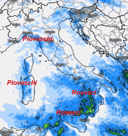 La depressione si porterà sullo Ionio. Darà luogo a rovesci sulla Sardegna orientale, la Sicilia e la punta estrema della Puglia. Rovesci anche tra Molise e Puglia Garganica con neve in Appennino oltre i 1000 metri. Su tutte le altre regioni tempo in miglioramento ed aumento delle temperature specie al nord, ma senza esagerare.