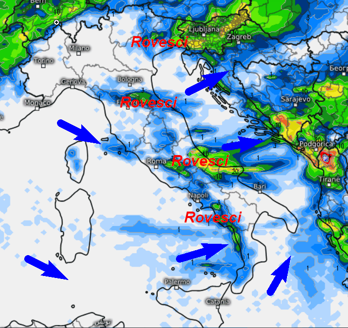 I rovesci veleggeranno abbastanza spediti verso levante con interessamento dell‘estremo nord-est e dell’Appennino settentrionale. Acquazzoni nell’arco della giornata interesseranno anche l’Abruzzo, il Molise, la Puglia Garganica, il Cilento e la Calabria Tirrenica, ma si tratterà di un passaggio veloce ed accompagnato da venti nord-occidentali. Su tutte e altre regioni tempo soleggiato.