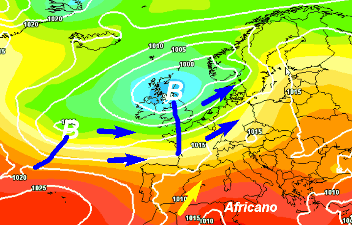 L’alta pressione africana proporrà un blando promontorio in grado di mettere sotto la stabilità e il caldo le regioni meridionali e centrali. Le regioni settentrionali, come si evince dalla mappa, resteranno parzialmente esposte al flusso occidentale instabile che interesserà soprattutto l’Europa centro-settentrionale. In altre parole, avremo ancora possibilità di temporali su parte del settentrione anche se in misura minore rispetto ai giorni precedenti.