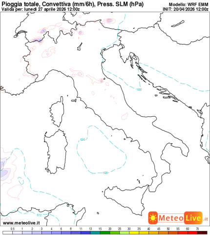 Le mappe sono estrapolate dal nostro modello fisico matematico WRF 10km: mostrano la quantità di pioggia prevista.