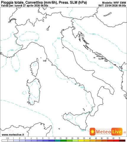 Le mappe sono estrapolate dal nostro modello fisico matematico WRF 10km: mostrano la quantità di pioggia prevista.