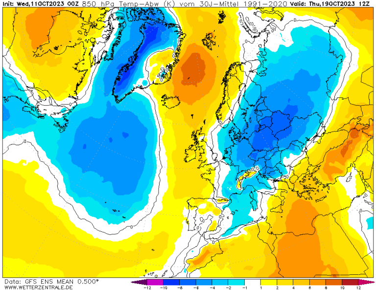 Anomalie delle temperature per i prossimi 15 giorni (a 1.500m)