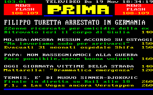 Le ultime news dal televideo Clicca sui numeri delle pagine blu sottolineati e navigherai velocemente in tutte le notizie! (a cura di https://www.servizitelevideo.rai.it)