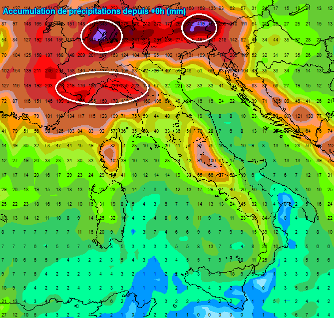 Da notare anche gli oltre 200mm attesi sulla Liguria, accumuli meno severi sul resto d’Italia, beffardamente scarsi in Adriatico e su molte aree del sud. Naturalmente non tutti i modelli concordano con questa linea di pensiero, ma una situazione del genere merita naturalmente di essere monitorata con attenzione.