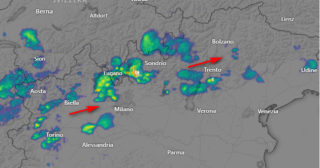 ACQUAZZONI e TEMPORALI in azione su alcuni settori del nord Italia