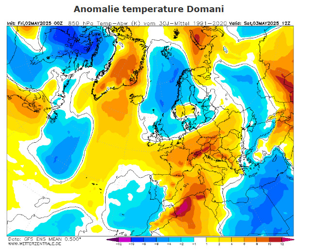 ANOMALIE TERMICHE in Europa nelle ore centrali di Sabato 3 maggio: fino a 10° superiori al normale su…