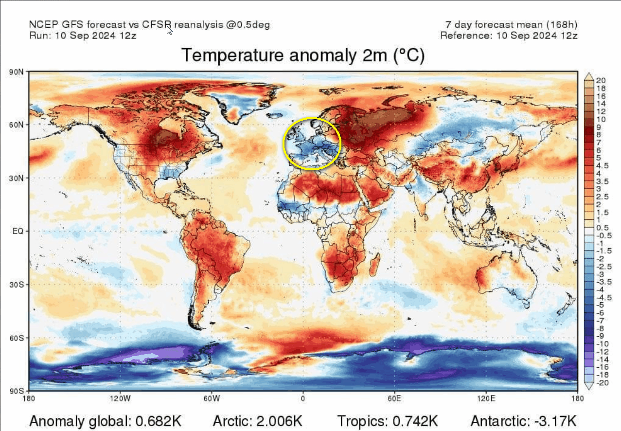 Anomalie termiche MONDIALI previste per i prossimi 7 giorni