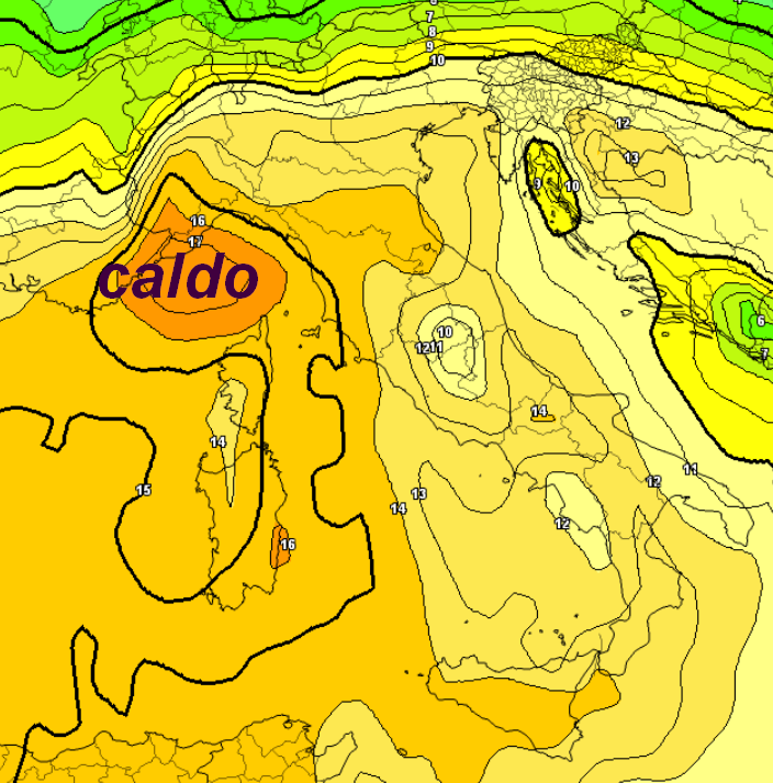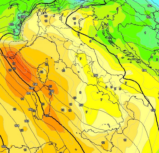 Le temperature a 1500m fanno intendere che la sommatoria tra venti di caduta miti da nord-ovest e la subsidenza, cioè l’avvitamento e schiacciamento dell’aria al suolo indotto dall’alta pressione, favoriranno una spettacolare quanto deleteria risalita delle temperature sino a 17-18°C: