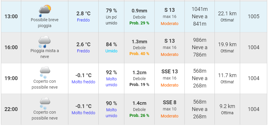 Qui il dettaglio previsionale del pomeriggio di domenica 25 febbraio: