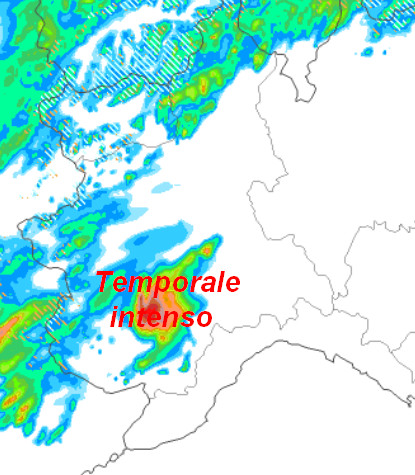 Le correnti in quota sono deboli, di conseguenza difficilmente il temporale presenterà carattere supercellulare. Anche il suo movimento risulterà scarso e secondo il modello in questione tenderà quasi subito a “spalmarsi”, muovendosi indicativamente verso est/nord-est in direzione del Novarese e del Vercellese.