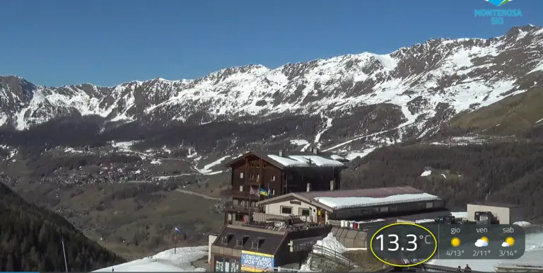 Il fiato africano si sta facendo sentire anche in Val d’Aosta. Ai 2350 metri del Gabiet (AO) si registrano al momento 7°! 3.6° positivi anche ai 3275 metri di Punta Indren, sul massiccio del Rosa; 13° invece nella zona di Champoluc.