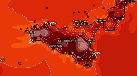 Caldo notevole anche in Sicilia con punte di 36°C nelle zone interne dell’isola, specie nel Catanese: