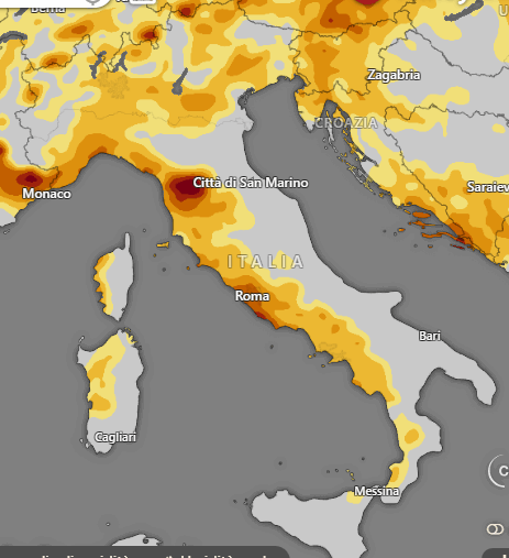 Questo è il grado di secchezza del terreno presente attualmente in Italia – le zone contrassegnate con il colore più scuro presentano problemi di carenza idrica più grave: