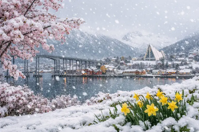 La città più colpita secondo le ultime indicazioni dei modelli sembra Tromsø, dove si prevedono nevicate intense soprattutto domenica 26 aprile con accumuli variabili tra qualche centimetro nella zona del porto e circa 10-15cm nell’immediato entroterra con temperature comprese tra -3°C e +1°C.