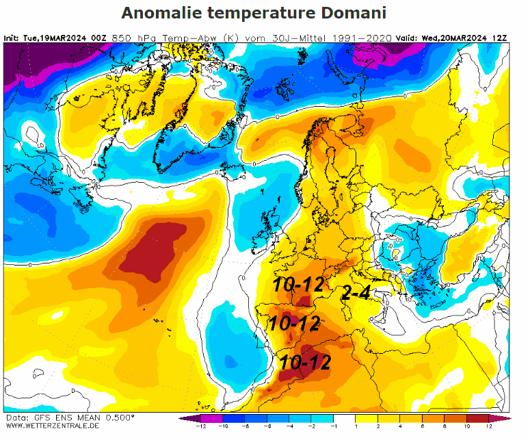 Che ANOMALIE TERMICHE sono previste in Europa per domani, mercoledi 20 marzo!