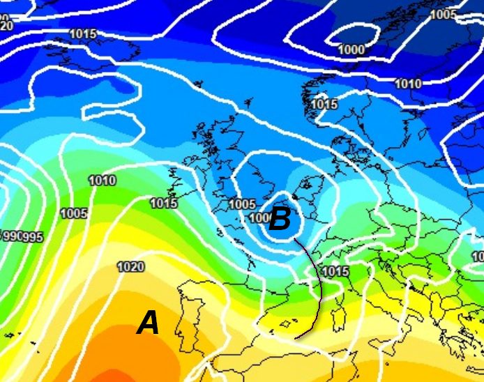 Subito dopo la circolazione nord-occidentale verrebbe sostituita da una stretta saccatura, in seno alla quale transiterebbe un fronte molto attivo, accompagnato da correnti da SSW, in grado di scaricare dai 5 ai 10cm di neve fresca in pianura tra mattinata e pomeriggio, almeno su Piemonte, ovest e centro della Lombardia, fondovalle del Trentino e del Cadore ed entroterra ligure, accumuli anche nettamente superiori oltre i 500m.