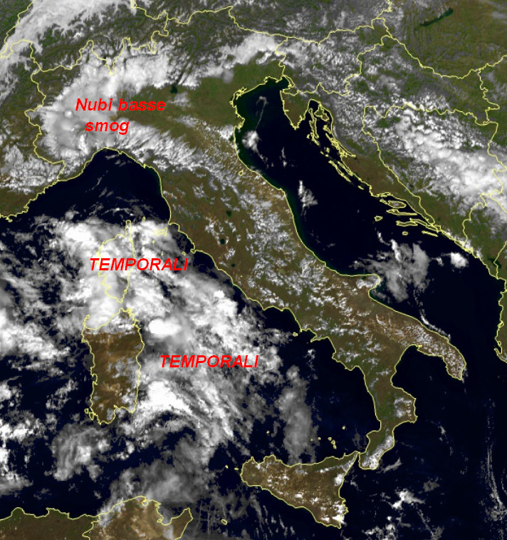 Al nord agisce una mistura poco piacevole di smog e nubi basse. Al largo, sul Tirreno, agiscono temporali anche intensi che per il momento si mantengono lontani dalle coste. Per il resto il tempo risulta abbastanza buono.