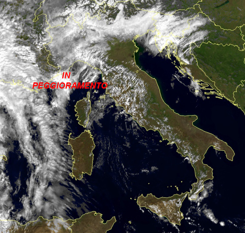 Il tempo sta peggiorando sul settore di nord-ovest dove arriveranno le prime piogge nel pomeriggio. Sul resto d’Italia si rileva una certa nuvolosità sulle zone tirreniche ed interne, per il resto sole e cielo sereno.