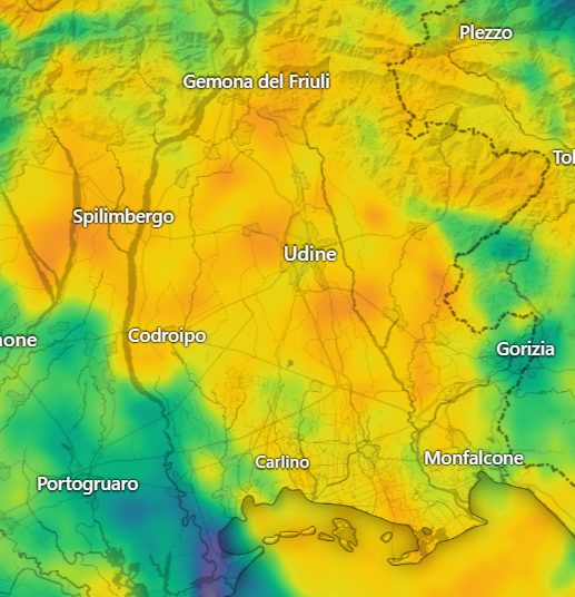 Piogge intense stanno interessando tutto il Friuli Venezia Giulia e insistono da ora, risparmiando solo il settore più occidentale:
