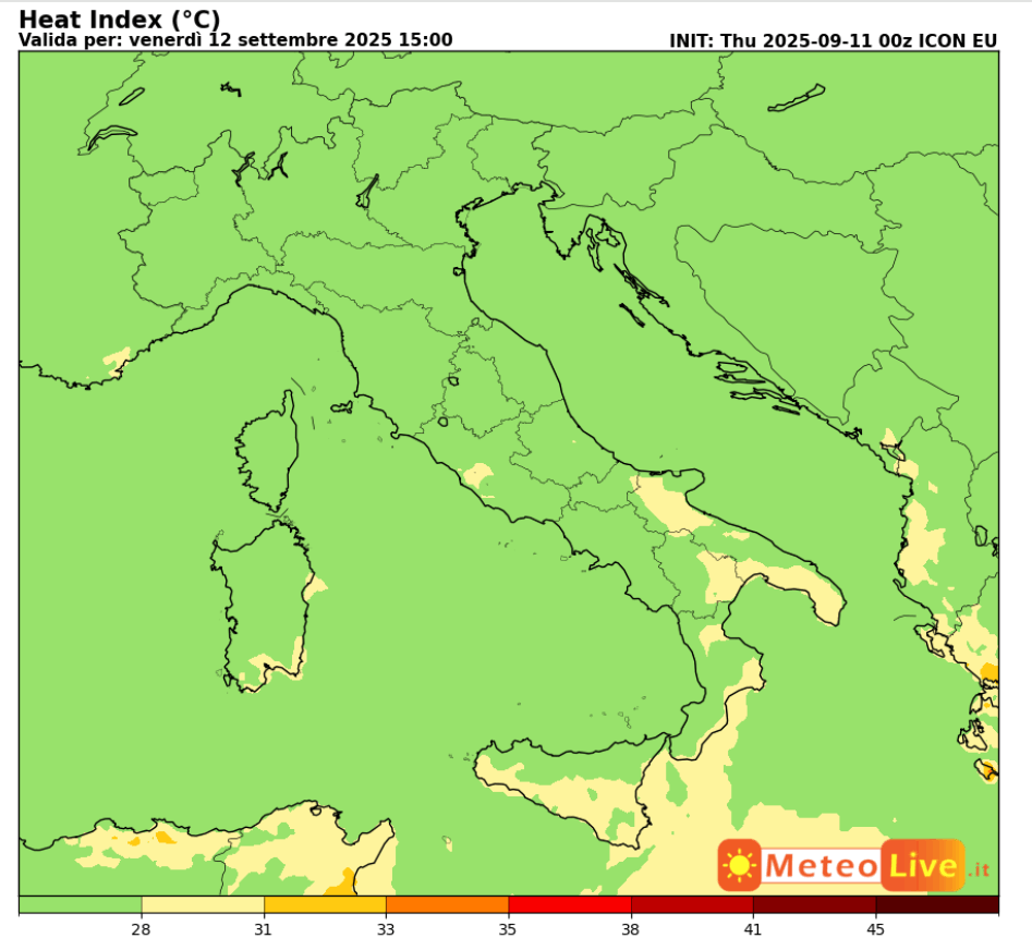 DISAGIO da CALDO pressochè NULLO in Italia nella giornata di venerdi 12 settembre