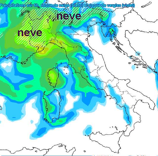 Neve è attesa anche su gran parte dell’arco alpino nella notte su lunedì e lunedì mattina a quote variabili tra 500 e 1000m a seconda dell’esposizione delle valli alle correnti meridionali di richiamo. Non sono invece attese nevicate lungo la dorsale appenninica in questa fase, salvo sul settore ligure di Ponente.