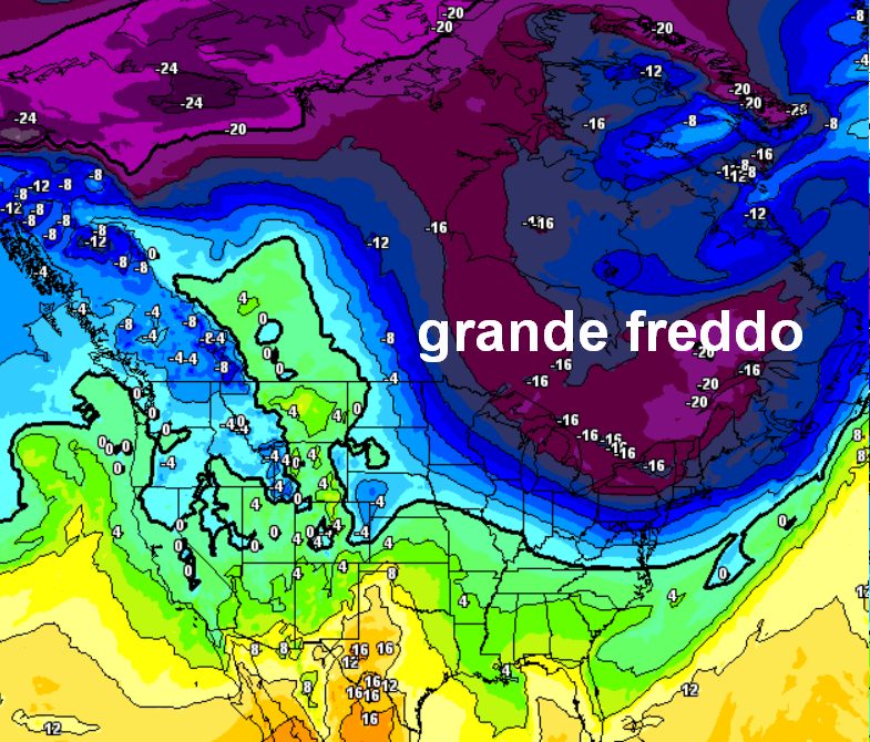 Questo però sarà solo un assaggio perché tra il 20 e il 24 dicembre una seconda e ben più rigida irruzione fredda colpirà gran parte del Canada centro orientale e tutti gli Stati Uniti orientali sino a sfiorare la Florida con conseguenze che saranno dettagliate nei prossimi giorni, guardate cosa si prevede il 21 dicembre a 1500m: