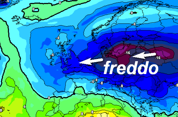 La mappa evidenziata in apertura si riferisce alle temperature previste a 1500m per il 30 gennaio sull’Europa. Si nota subito l’irruzione fredda da est su centro Europa e parte dell’Italia con conseguenze nevose deboli anche in pianura al nord, mentre il centro e il sud sarebbero interessati da un richiamo di venti sciroccali più miti.