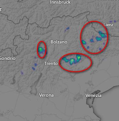 Focolai TEMPORALESCHI sul Trentino Alto Adige