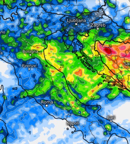 Ecco infatti le piogge previste fra Emilia-Romagna e il centro Italia, principalmente sul versante Adriatico, ancora incerto il coinvolgimento della Toscana e del Lazio: