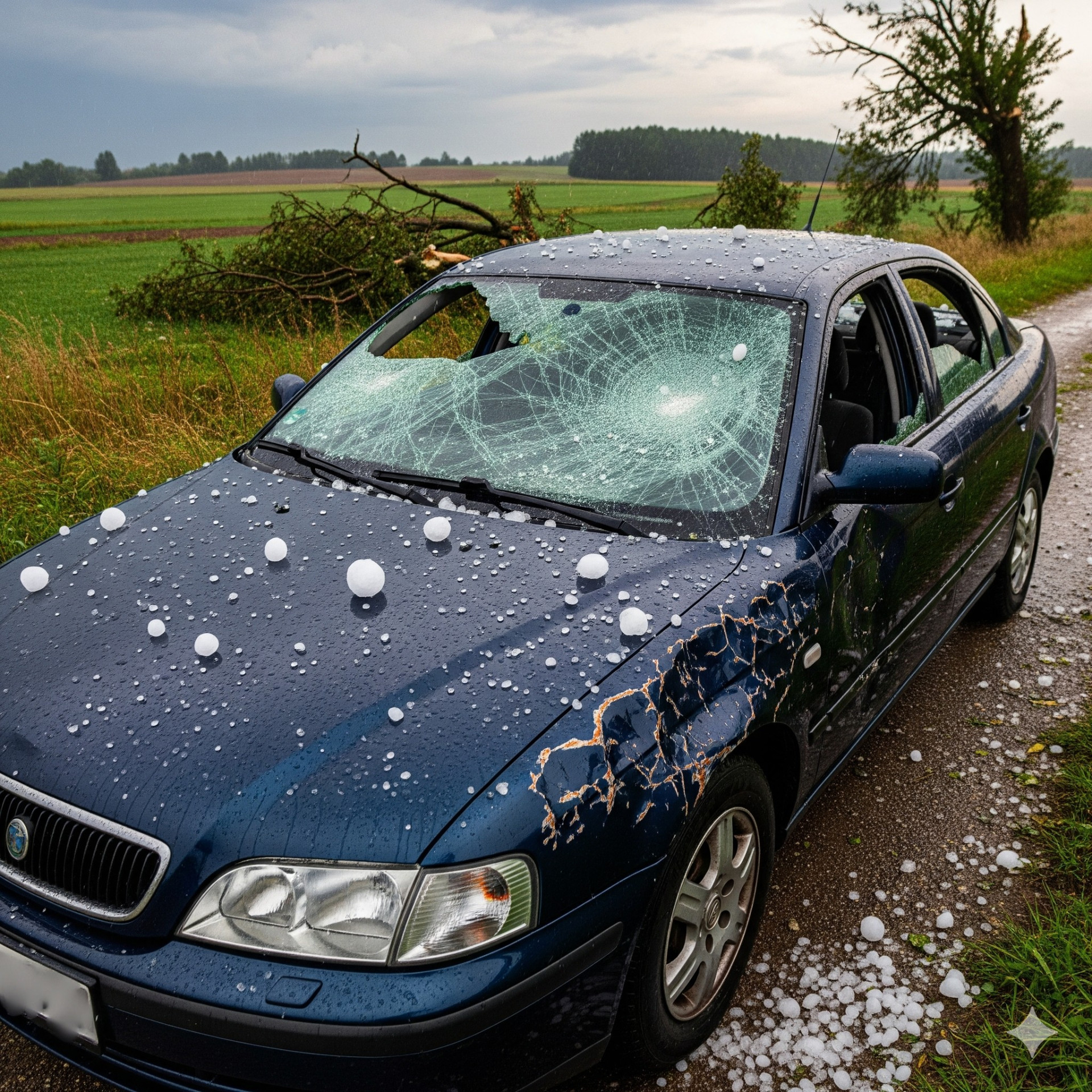 Cosa puoi fare quando una grandinata di queste dimensioni ti sorprende in pochi secondi? Coprire la tua macchina con una coperta invernale può certamente aiutare piuttosto che lasciarla lì a subire i colpi delle palle da tennis che cadono dal cielo, ma non muoverla è comunque meglio che avviarla sperando di scampare alla tempesta, ormai qui è tardi, faresti solo più danni: infatti la velocità dell’auto farebbe impattare i chicchi contro la carrozzeria con una violenza ancora maggiore.