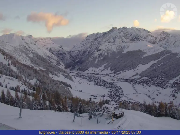 Una breve ma intensa nevicata ha interessato Livigno in alta Valtellina tra le 17 e le 20 di domenica 2 novembre scaricando tra i 5 e 10cm di neve a seconda delle zone. Paesaggio trasformato dal fronte freddo che ha avuto caratteristiche temporalesche. Il cielo poi si è rasserenato e le temperature sono piombate ben al di sotto dello zero. Stamane paesaggio ancora meravigliosamente bianco.