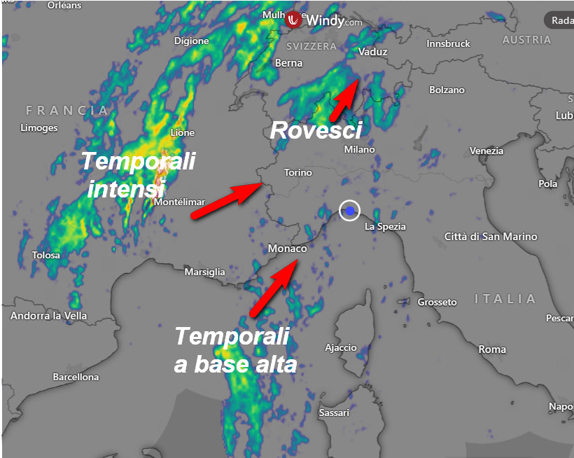 La posizione attuale dei TEMPORALI più forti
