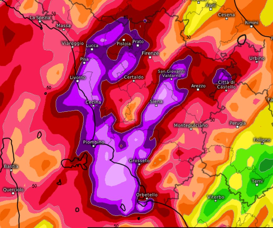 Questo è il focus di un modello a più alta risoluzione centrato sulla Toscana: