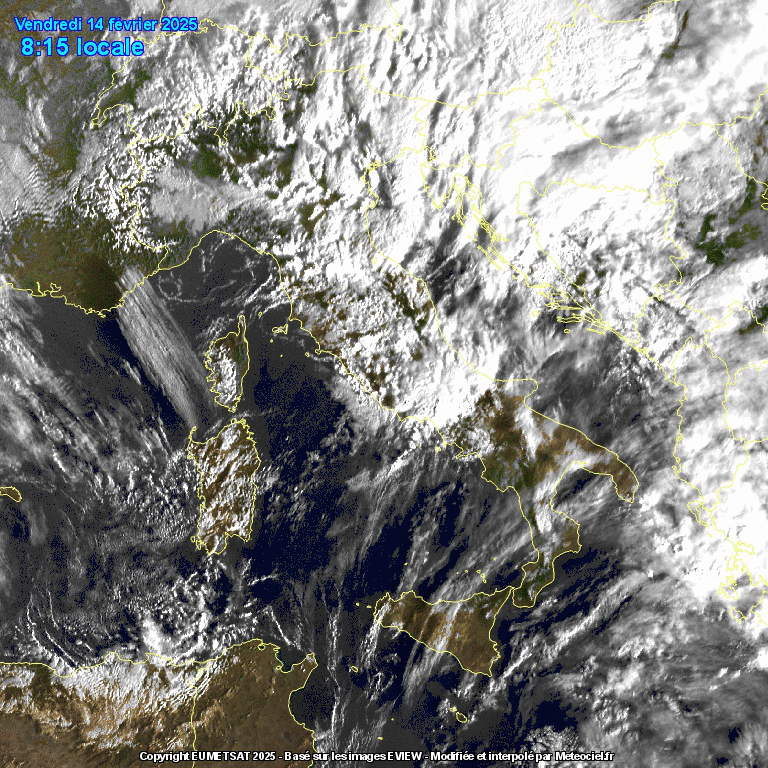 Nelle prossime ore dovrebbe determinare un intensificazione del vento di caduta dalle Alpi sul nord-ovest ed un richiamo di fredde correnti orientali al nord-est, con crollo della quota neve soprattutto sull’Emilia Romagna. Nella foto potete vedere l’animazione satellitare delle ultime 2 ore.