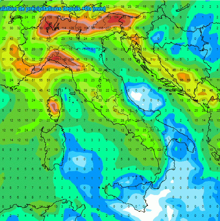 La svolta meteo che dovrebbe palesarsi nell’arco della settimana prossima è ben visibile anche nella mappa riassuntiva delle piogge attese in Italia per i prossimi 10 giorni secondo il modello americano. Le zone che dovrebbero ricevere più pioggia sembrano al momento le Alpi centro-orientali (con neve solo in quota) e la Liguria, anche se gli assetti precipitativi potrebbero cambiare nell’arco dei prossimi giorni.