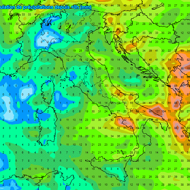 La regione più piovosa, una volta tanto, non farà parte del nord Italia, ma sarà al sud. La punte estrema della Puglia potrebbe accumulare oltre 100mm di pioggia, seguito dal Cilento con circa 80mm. Più scarse le piogge sull’angolo nord-occidentale e sulla Sardegna oltre al medio Tirreno.